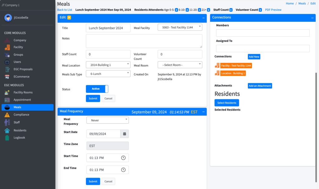 Create meals and track Residents, Staff and Volunteers for and accurate count of meals in Empower Group Care. Creating and managing meals can’t be any simpler. Tracking meals can be accessed by staff who have permission set for Meals. Specific meals can also be assigned to staff members and/or groups.
